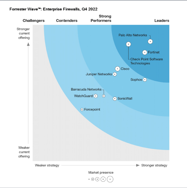 We are pleased to announce that Fortinet has been identified as a leader in the Q4 2022 edition of Forrester Wave: Enterprise Firewalls.